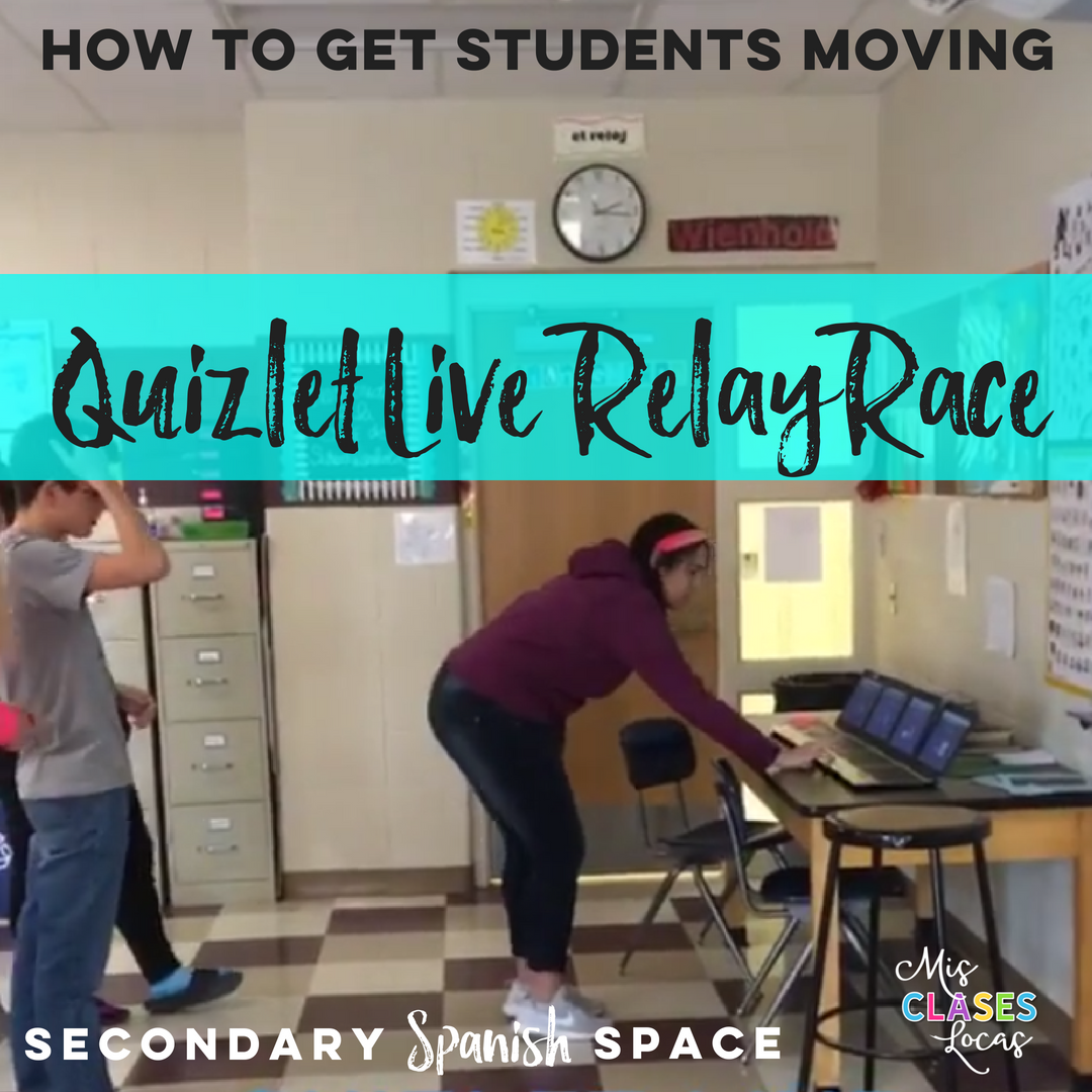 Quizlet Live has become my go-to time filler with an extra 10-15 minutes at the end of Spanish class. I rarely create anything myself and just search the chapter of the novel we are reading or unit of study and find either vocabulary or questions in Spanish. But to keep it fresh and also gets students up and moving I love the variation of Quizlet Live Relay Race. Students all sign in like normal, but I recommend using computers if you have them, or having students use phones to shut off their lock screen. Students set up all computers on a table and then stand a few steps back from the table or on the other side. One member at a time runs up to the computers to answer the question for the whole group. Like a relay race, once they return the next team member has a chance to answer the next question and so forth until everyone is done. You can see more details in this post.