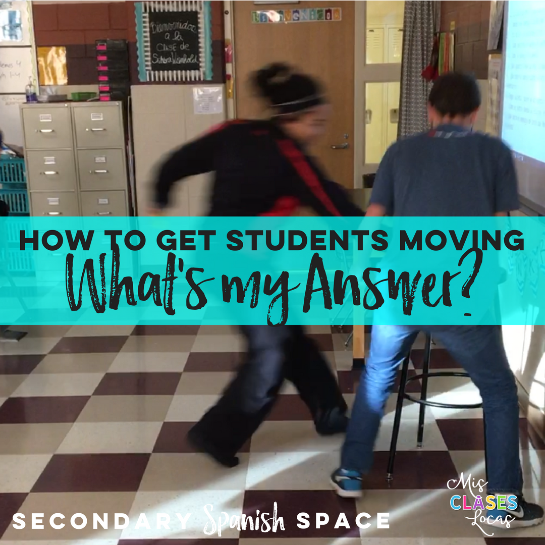 Hola friends! It is Allison from Mis Clases Locas. One of my big goals is to get every single student up and moving at some point in every class. I even just presented on this topic at IWLA this past weekend. This is such a priority, that my room is set up deskless, which gives us so much room for activities. If you are interested in learning more about how this works, check out my Deskless class FAQ. Our students sit ALL DAY LONG. I do not know about you, but I can not stand sitting all day for PD, and that is what we do to our students each day. I have found that getting students up and moving increases engagement as well as student motivation. Here are some of my favorite ways to get your Spanish class moving.