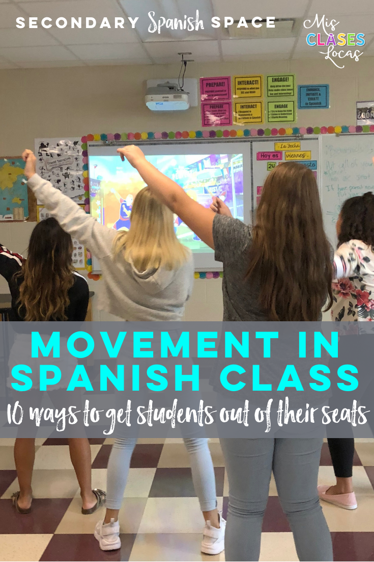 Inside: Movement in Spanish class. How to get your Spanish class moving to increase engagement and motivation.